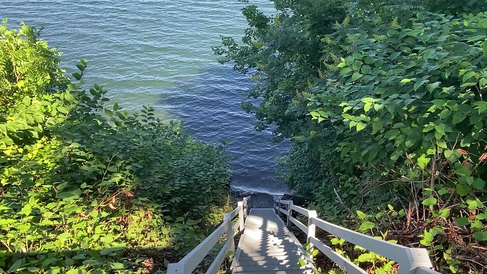 Lakefront shoreline is directly accessible outside the back door, down stairs that